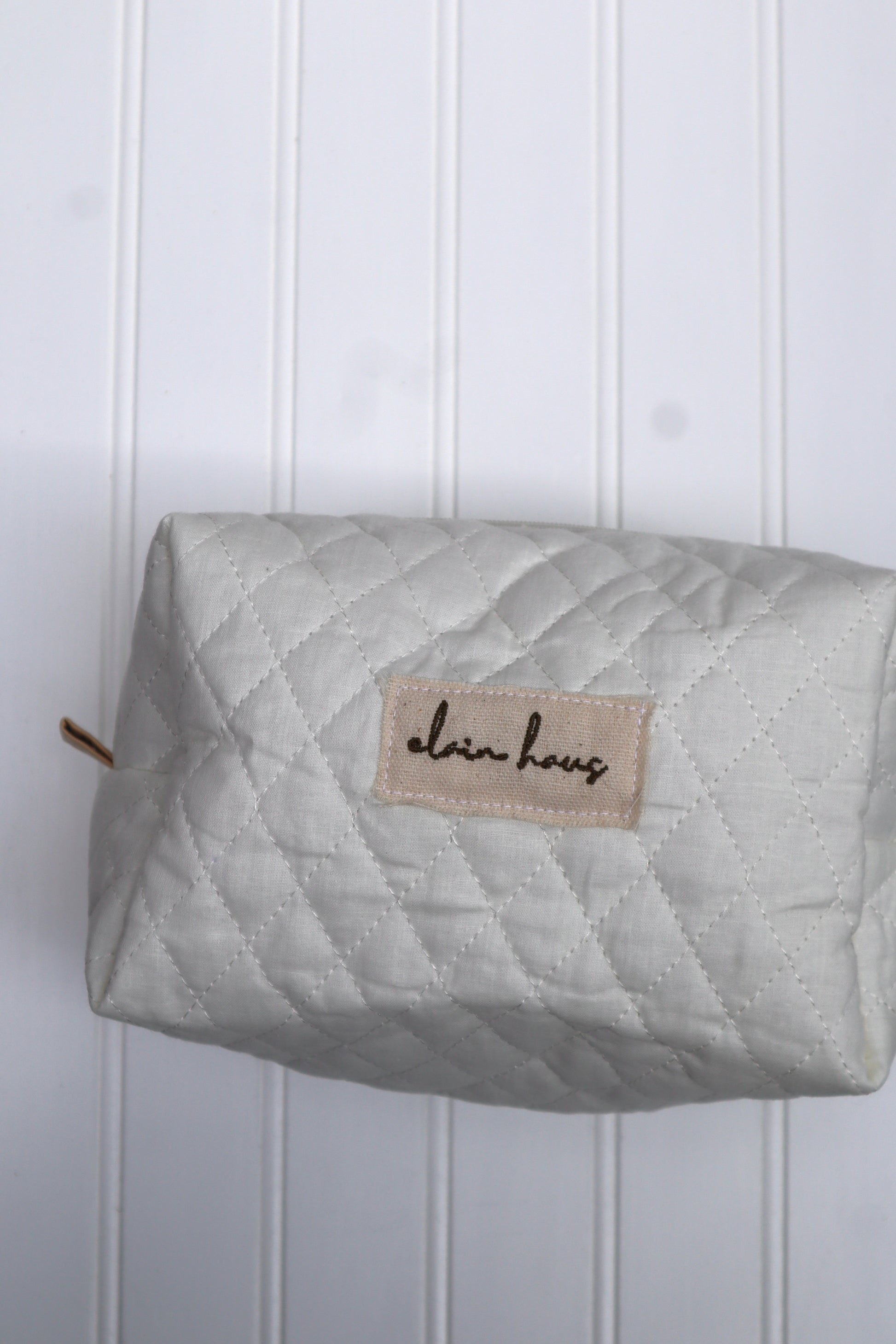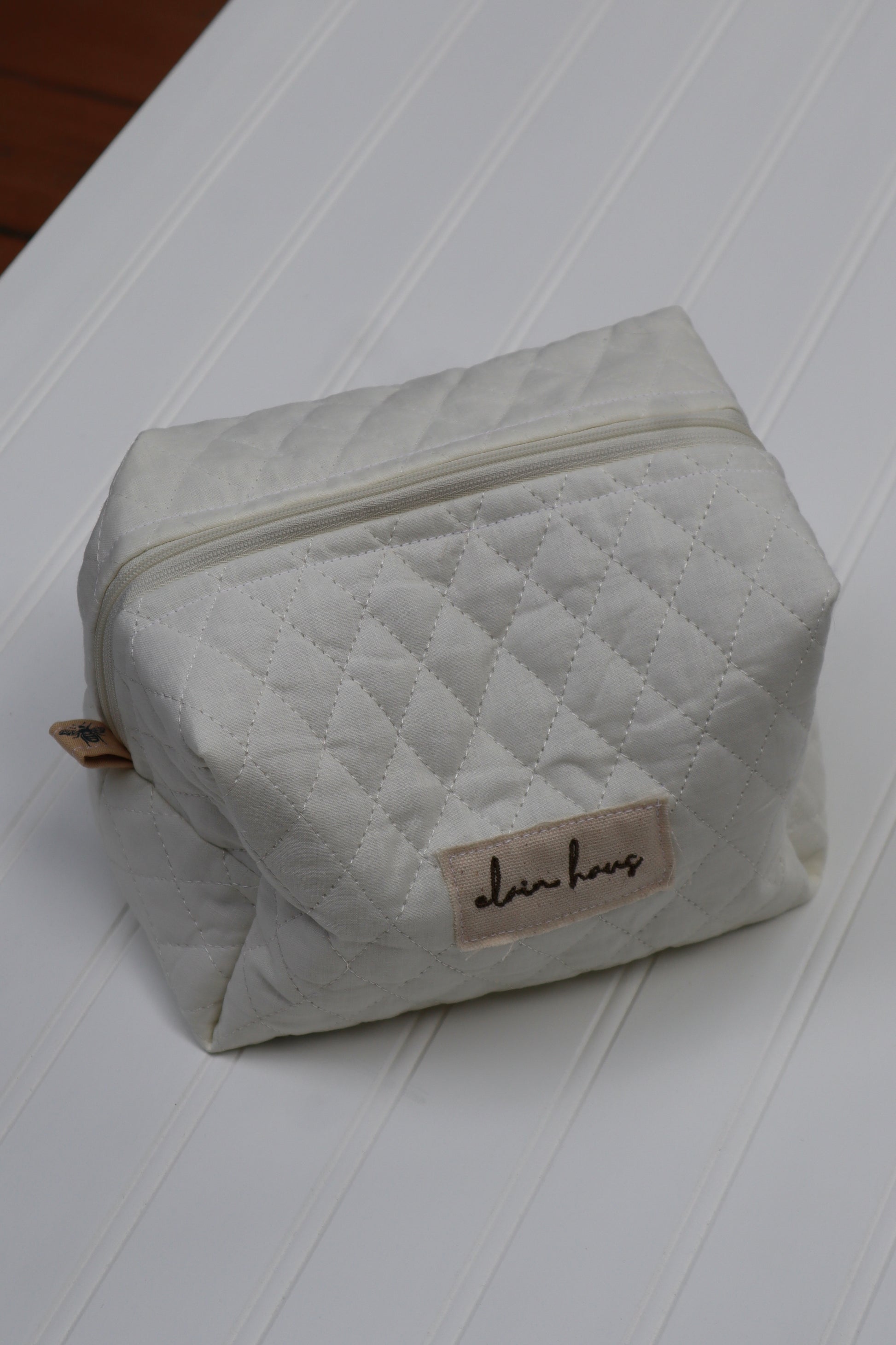 Handmade with care, this White Quilted Toiletry Bag combines timeless simplicity with everyday function. The soft quilted cotton fabric gives it a clean, textured look while offering gentle structure, and the boxy shape with secure zipper closure makes it perfect for organizing makeup, skincare, or travel essentials. A versatile neutral design that feels both classic and effortlessly practical.